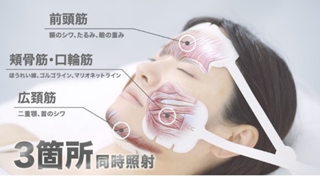 1度で額・頬・あご下の3か所を同時施術が可能。